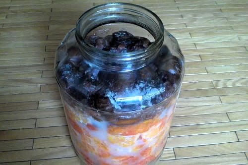 *유리 항아리의 뚜껑을 덮고 청결한 그늘진 장소에 두고 발효시켜 줍니다